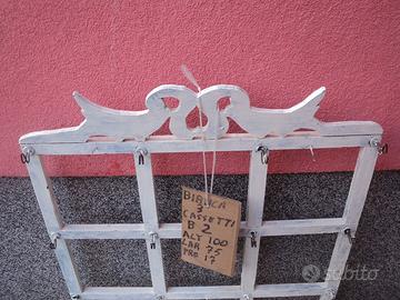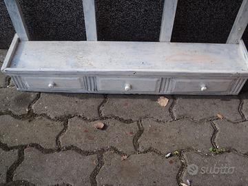 piattaia da parete bianca con 3 cassetti di epoca primi 900 con lettera di riferimento B2 misure su cartoncino