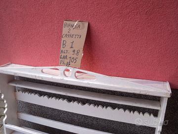 piattaia da parete di colore bianco con 2 cassetti con n di riferimento B1 epoca prima meta del 900 misure su cartoncino