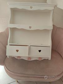 vendo piattaia in legno con cassetti colore bianco con fiocchetti rosa prezzo 75 come nuova
