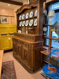Piattaia in noce nazionale massello stile barocco piemontese produzione artigianale anni '50 cm 190 x 54 x 250 H