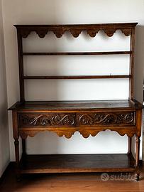 Piattaia inglese primi ‘900 Misure lunghezza cm149 Altezza cm 175 Solo parte piattaia altezza cm89 Profondità cm45,5 larghezza cassetti cm 62,5. Nelle foto sono evidenziati eventuali segni del tempo