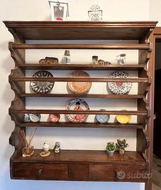 Piattaia antica in legno con 2 cassetti . Esclusi i soprammobili
