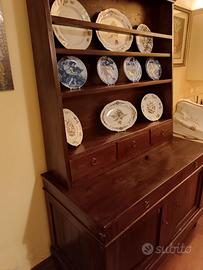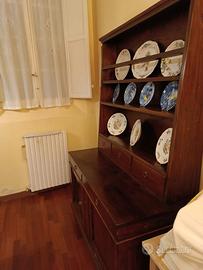 Piattiera completa di mobile porta piatti per soggiorno in legno antico scuro dimensioni larghezza1,40 mt - altezza2,15 mt - profondità 0.60 mt