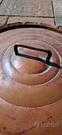Due piatti antichi del diametro di circa 50Cm battuti a mano. Sono presenti anche i supporti per appenderli al muro.