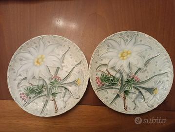 Coppia di antichi piatti in maiolica Villeroy & Boch Schramberg (VBS), diametro cm 20. Spedizione tracciabile.