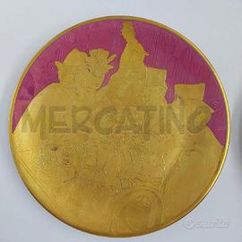 4 PIATTI ATELIER R. SARTI CON SFONDO IN DIVERSI COLORI E RAFFIGURATI DIVERSI PERSONAGGI IN COLOR ORO. CONDIZIONI ABBASTANZA BUONE COME IN FOTO.