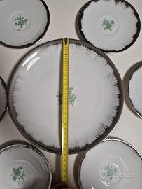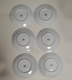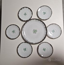 Set di 7 piatti Bavaria Seltmann Weiden k 1 piatto piano ( misure in foto ) 6 piattini ( misure in foto ) bordo argento. Servizio vintage di pregio - USATO,, in perfetto stato. MOM#