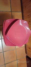 5 piatti 5 piattini rossi e 4 piatti e 1 piattino grigio