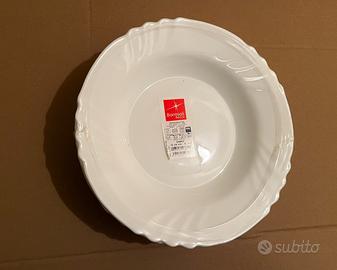Servizio da tavola Ebro da 12 pz della Bormioli Rocco, composto da n.6 piatti piani di diametro cm 25,6 e n.6 piatti fondi di diametro cm 24. Elegante, colore bianco, lavabile in lavastoviglie e adatto al microonde in vetro temperato.