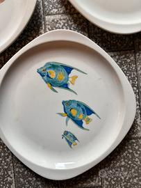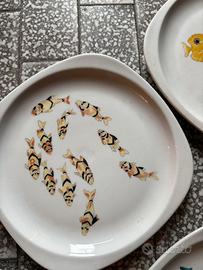 Ogni piatto presenta una composizione diversa: pesci singoli, in coppia o in piccolo banco.