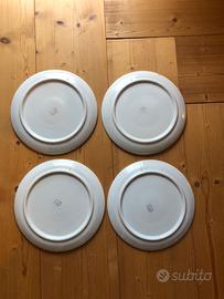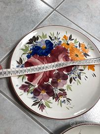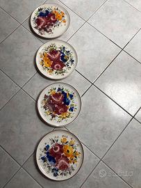 Piatti da muro (4) in ceramica, artigianato friulano, creati totalmente a mano e decorati a motivo floreale. Diametro 27 cm. Ceramiche Pezzetta