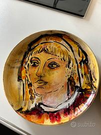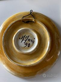 Piatti da muro in ceramica dipinti a mano firmati Tucci del 1990.