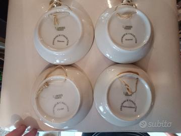Il piatti si presentano in ottime condizioni come mostrato in foto. Presentano qualche segno lasciato dal tempo e dall’usura e del tempo. Solo uno ha un pezzettino sbeccato come da foto.