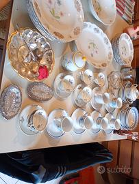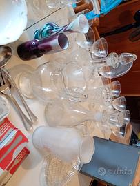 piatti decorati ,zuppiera,bicchieri calici ,vasi in cristallo posate in acciaio inox anno 1960