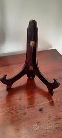 trittico di bellissimi piatti in ceramica decorati a mano e relativi espositori in legno