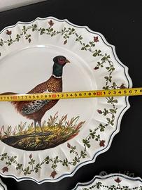 Ogni piatto mostra un diverso uccello da caccia, come un fagiano, una beccaccia e una pernice. Firmato Luigi Parise su tutti e 3 i piatti.