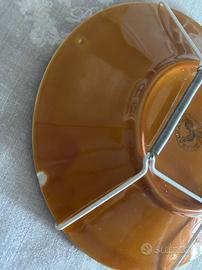 Vendo piatti decorativi da parete in ceramica smaltata con motivo a foglia di vite in rilievo, stile rustico/vintage (vintage autentico, anni ’60/’70). Belli da appendere o da esporre, vendo set coordinato da 4 pezzi, uno è leggermente scheggiato dietro (vedi ultima foto), davanti non si nota nulla.