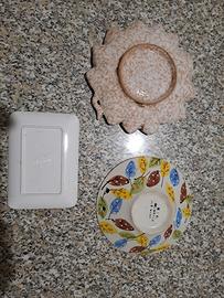 vendo due bellissimi piatti decorativi fatti a mano è un posacenere della vernet branca,vendo tutto a 12 euro, per qualsiasi informazione scrivete.....