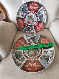 Vendo 5 coppie di piatti decorativi in porcellana, manifattura orientale. In arabo è scritto che sono cinesi, ma non so dare indicazioni certe. Il piatto piccolo misura 30 cm di diametro, quello grande 35 cm. Sono placcati oro. Sono 5 coppie grande+ piccolo e altri 3 piatti piccoli Vendo a 30 euro la coppia, 20 euro il singolo piatto. Comprati ad un'asta antiquaria, non hanno confezione originale