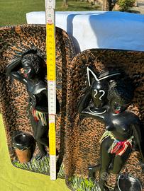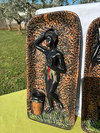 N 2 piatti rafiguranti statue africane di donna Anni 80 ben tenuti da appendere