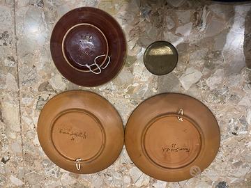 Piatti decorativi da parete I due piatti grandi sono di franc Scott 55: diametro 26 cm. Piatto con motivi floreali: diametro 21 cm. Piattino con gufo Atena: 9 cm. Costo singolo articolo: 5 euro l’uno
