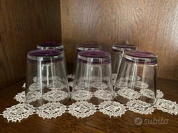 Vendo diversi articoli 10 Bicchieri/calici da spumante con ricami 6 piatti piani con disegno fiore 5 piatti piccoli piani con disegno fiore 5 piatti fondi con disegno fiore 6 bicchieri acqua con fondo viola 10 Calici da aperitivo 1 piatto grande bianco da centrotavola Vendo intero blocco €20
