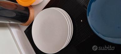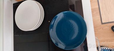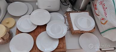 Come in foto, 8 fondi bianchi, una dozzina di piccoli da antipasto (maggioranza bianci, 4 beige e il resto blu) e 2/3 lisci. Già imballati. Prezzo simbolico