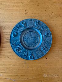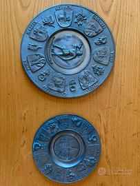 Piatti in feltro con stemmi della comunità della Val di Fassa e dell’Alto Adige. Piatto grande peso 1,2 kg diametro 27 cm. Piatto piccolo peso 0,5 kg diametro 20 cm.