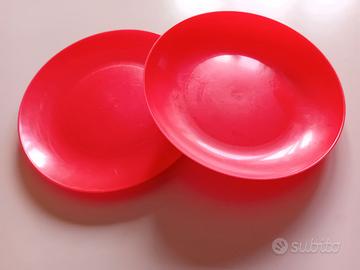 Vendo set completo da 104 pezzi di piatti fondi e lisci, in plastica rigida marchio VE CA Italia per alimenti, riutilizzabili, lavabili, diametro 22 cm., colore rosso.