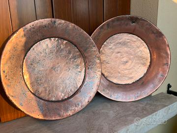 Coppia vassoi in rame vintage 37 cm – decorativi Descrizione: Vendo bellissima coppia di vassoi/piatti in rame massiccio, diametro circa 37 cm. Appena puliti e lucidati, in ottime condizioni estetiche, ideali come centrotavola, decorazione da parete o per arredamento rustico/cucina. Il rame ha una bellissima finitura calda e brillante che dona carattere a qualsiasi ambiente. Venduti in coppia PREZZO : 100€ Cinsegna a mano