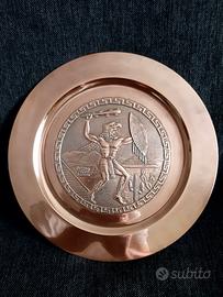 Coppia di piatti da parete in rame , vintage anni 80 , provenienza YUCATAN (Messico) ,con figure impresse raffiguranti scene dell'antica civiltà MAYA.