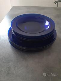 piatti in vetro trasparente blu, 4 fondi fondine e 5 piani
