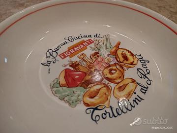 4 piatti La Buona Cucina di Fioravanti - Tortellini al Ragù vintage da collezione. Due piatti piani e due fondi. Con bordatura rossa.