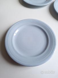 Tre piatti frutta azzurri, colorati in pasta, diametro cm 19 Perfetti Marchio Ceramica Revelli Laveno. Anni Trenta