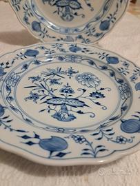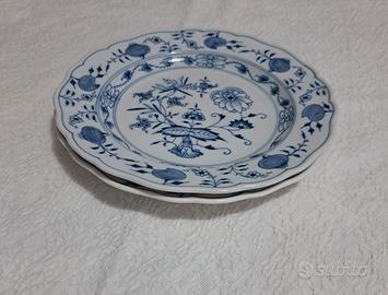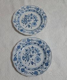 piatti Meissen Set di due splendidi piatti manifattura Meissen in porcellana con decoro a cipolla blu ( Blue onion ) Zwiebelmuster