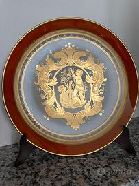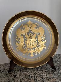 I piatti sono in porcellana incisa a L’Acquaforte in oro 24 kt e rappresentano le 4 stagioni evidenziate da bordo in smalto di colore differente.