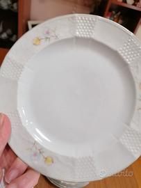 Otto piatti fondi, bianchi con decorazioni, porcellana