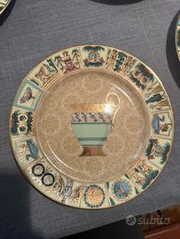 Vendo 4 piatti da parete in porcellana finissima con decorazioni colore e oro, perfetti per arredare. Anni ‘80. Integri completamente. Non vendibili separatamente.
