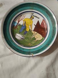 Rappresentano le quattro stagioni .purtroppo uno di essi è caduto, si è rotto, è stato, maldestramente, incollato,Comprati, 48 anni fa, in una bottega, di articoli artigianali a Tropea. Il costo di ognuno di essi è di € 20, per un totale di 60 euro per tutti e 4 i piatti (quello rotto non si paga, se venduti tutti insieme)