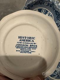 Set 14 pezzi piatti da dolce e macedonia "Historic America" by Johnson Bros linea blu in finissima porcellana pezzo Vintage raro anni '60.