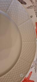 8 piatti piani bianchi con decorazione in rilievo. Perfette condizioni. Su 4 piatti non è presente il marchio