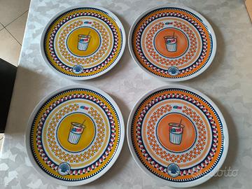 Vendo piatti pizza personalizzati Estathe' diametro 33 cm, colore giallo e arancione, porcellana Baci Milano