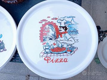 7 Bellissimi piatti Pizza praticamente nuovi, 4 con immagine "Pizzaiolo" 3 con immagine "Pizza intera". In OMAGGIO piatto bianco pizza decorato + piatto portata. Costo totale euro 20