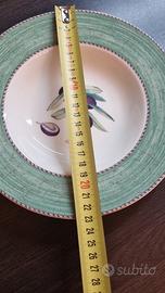 Vendo 10 piatti in porcellana Wedgwood decoro Sarah's Garden edizione 1997 oggetto raro. I piatti non sono mai stati utilizzati: regalo di nozze rimasto imballato e in perfette condizioni. Totale 10 piatti fondi bordo verde mela con decoro ramo di ulivo.. Disponibile a vendere gruppo da 6 o gruppo da 4.