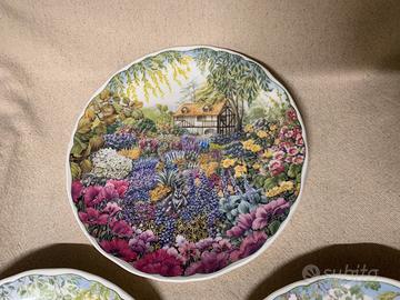 Piatti Royal Albert bone china England set composto da 3 pezzi by Janet O’Malley anno 1995 in perfette condizioni come da foto, nel set sono compresi anche 3 sostegni reggipiatto
