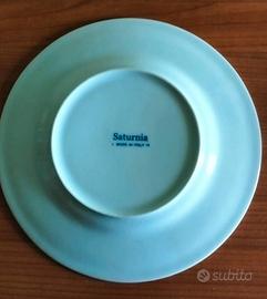 Piatti Saturnia bianchi con decorazione in blu, n 6 piani, n 6 fondi, n 4 da frutta.