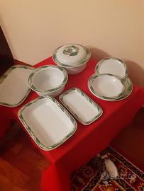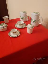 Servizio di piatti Thomas da 12 comprendente 12 piatti piani, 12 fondi , 12 piattini da dolce, insalatiera tonda, 3 piatti rettangolari di misure diverse, una brodiera. Servizio da caffè per 12 con zuccheriera e lattiera, servizio da te per 12 con teiera, zuccheriera e lattiera. Il servizio è nuovo.