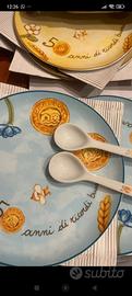 Set Thun composto da 3 piatti azzurri e 3 gialli+ 6cucchiaini. Tutto in ceramica . Edizione limitata di mulino bianco 50*anniversario