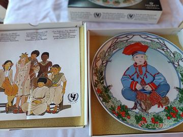 due piatti UNICEF prima serie Villeroy & Boch confezionati, n. 7 Lapponia e n. 8 Giappone. Si vendono insieme 50€ o singolarmente 28€ ciascuno. Non si effettua spedizione, solo consegna diretta.