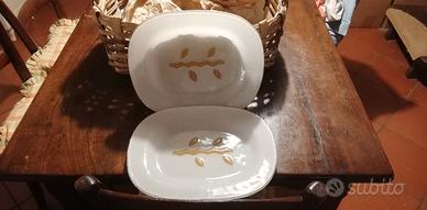Bellissimi piatti in vetro soffiato. Eseguiti da artigiano locale specializzato in "vetri cattedrale". Sono di colore bianco opaco con dettagli ocra. Presentano una forma elegante e delicata. Perfetti per un'occasione speciale, per aggiungere un tocco di classe alla tua tavola, da esporre. Mai usati. Vendita singola €15.